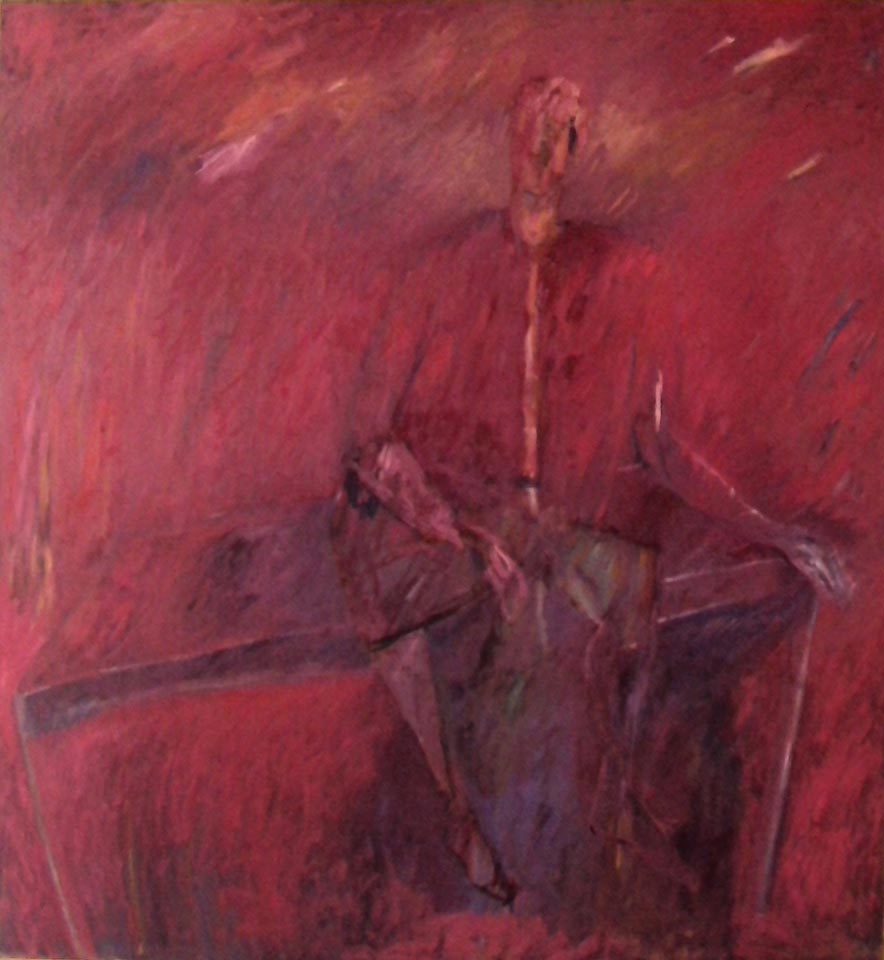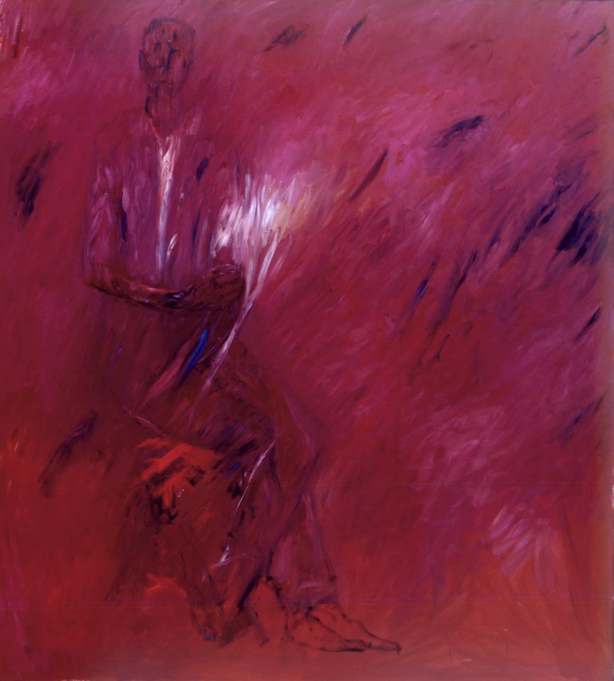 "Uomo seduto in un paesaggio rosso"