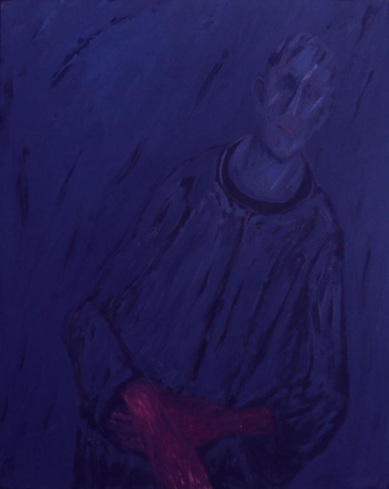 "Uomo in viola con mani rosse"