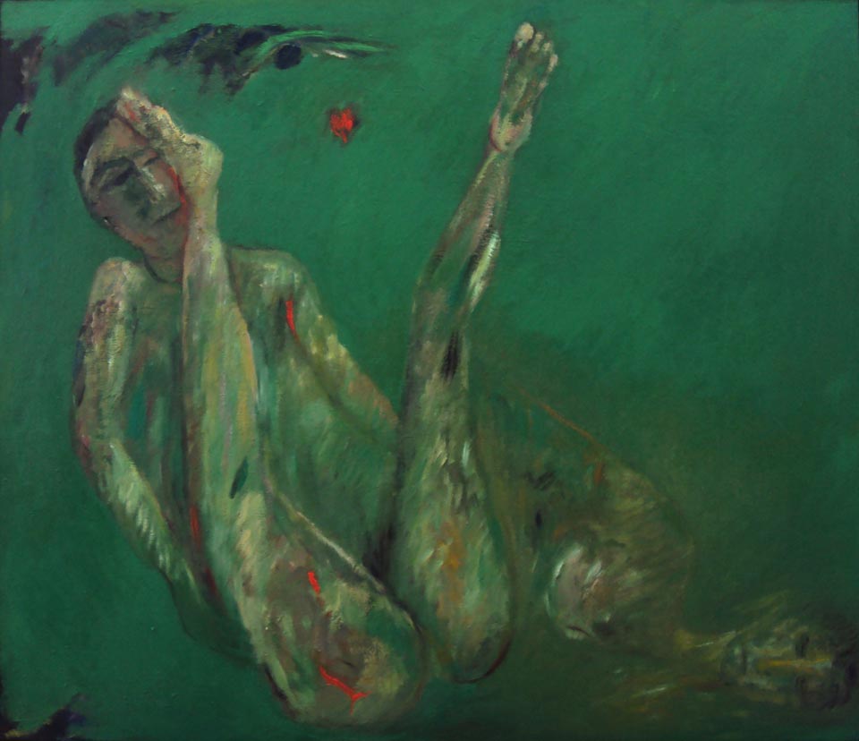"La signora con il vestito trasparente su fondo verde"